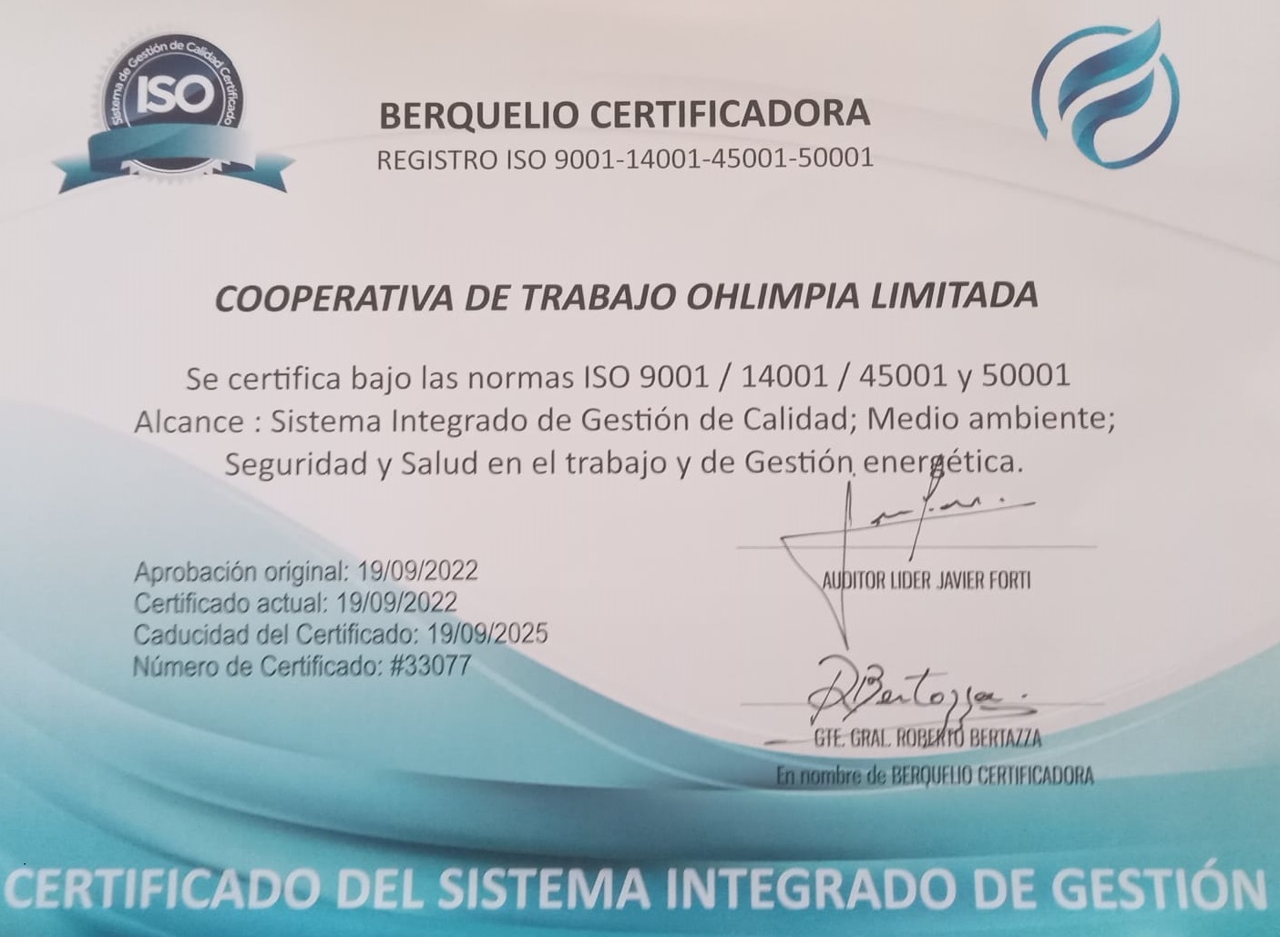 Berckeglio is a certifier endorsed by ISO International. Internal and external audits of all ISO regulations. Starting the path to growth begins with a conviction, this harmonious conviction throughout the corporation is achieved with clear guidelines, trusting in standardization as a path to success.